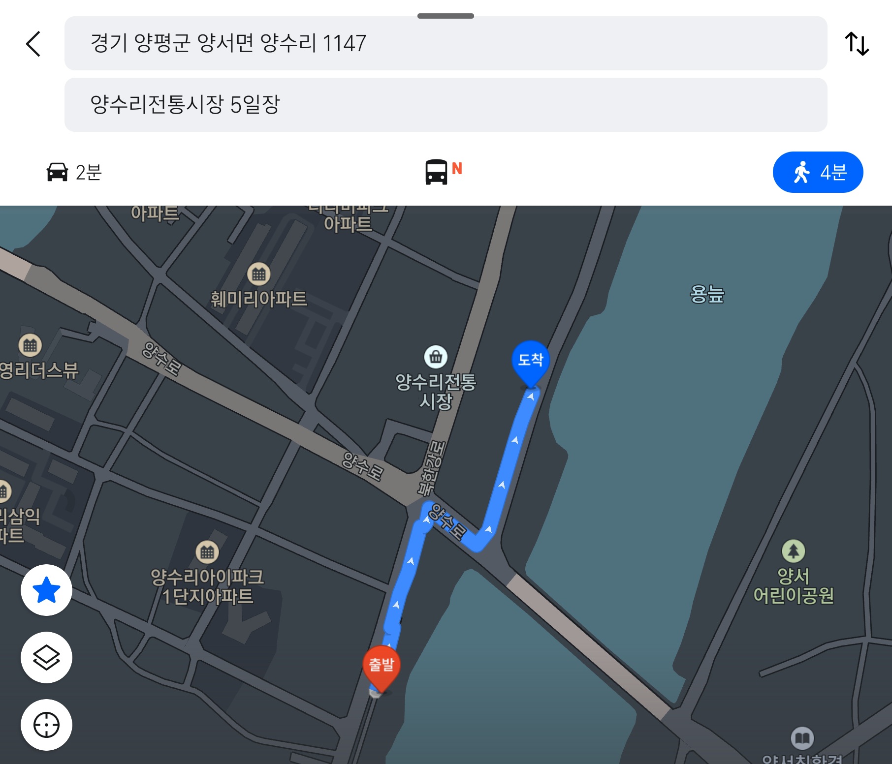 * 티맵 : '양수리 1147' 검색