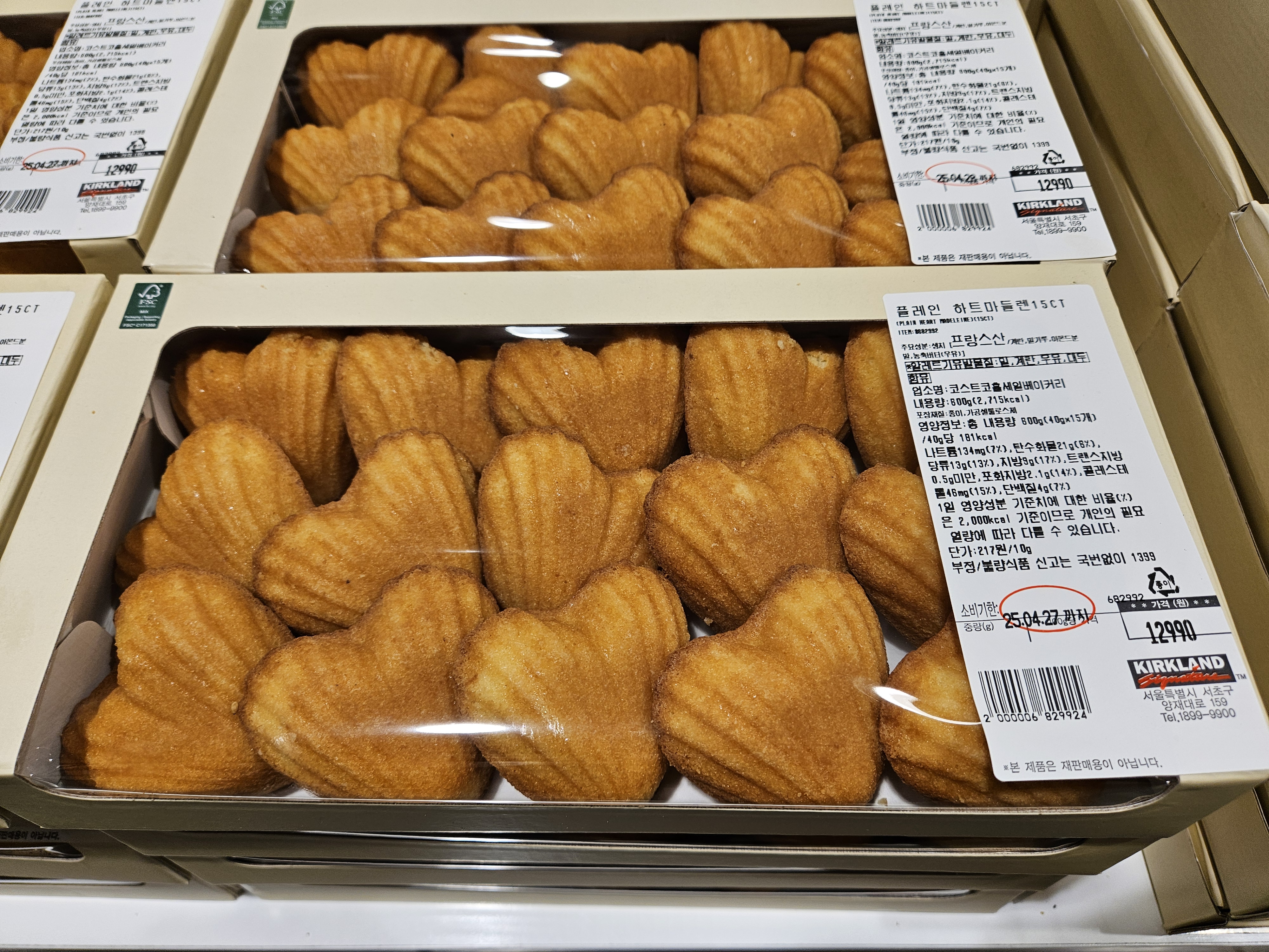 하트 모양 마들렌 15개가 12,990원. 이런건 .. 선물하거나 회사에서 또는 어느 모임에서, 파티에서 단체로 나눠먹기 좋죠. 회사 갈 때에 하나씩 싸가도 좋지만.. 저는 차라리 무화과 깜빠뉴를 한 조각씩 싸갑니다.